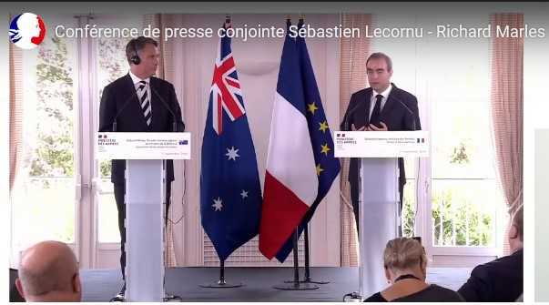 Rencontre bilatérale ce 1er septembre 2022 à Brest entre notre ministre de la défense Sébastien Lecornu et Richard Marles Premier ministre adjoint et ministre de la Défense australien, suivie de la conférence de presse conjointe.