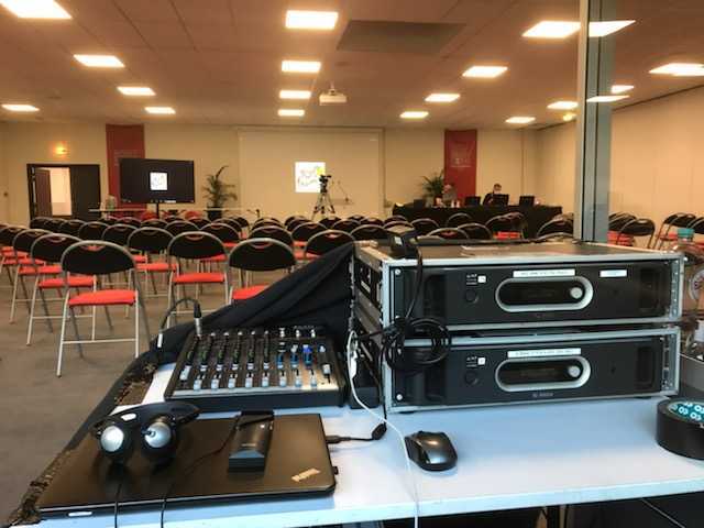 Un peu de sport en cette rentrée 2022 ... 4 salles, 17 canaux de langues, 3 tables rondes distanciées, 60 micros de conférence, le tout connecté à 12 cabines d'interprétation simultanée, sous la surveillance assidue de Yann notre ingénieur du son .... et en plus tout a parfaitement fonctionné !